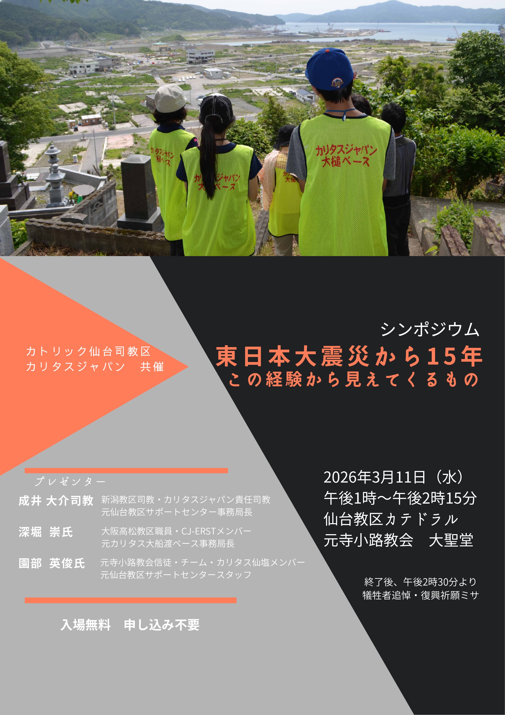 カトリック仙台教区では、カリタスジャパンとの共催により「この経験から見えてくるもの」と題してシンポジウムが行われます。