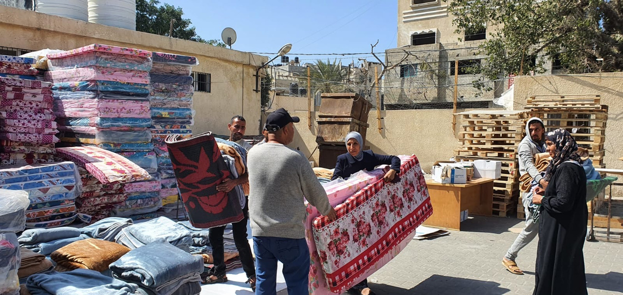 ガザ地区での寝具の配布©Catholic Rerief Service (CRS)